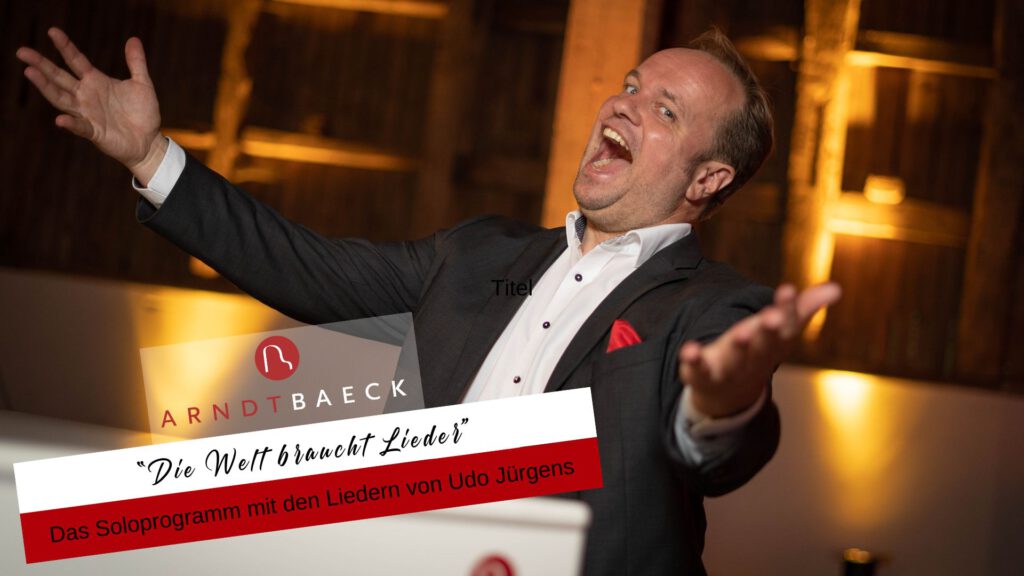 Der Name ist Programm: „Die Welt braucht Lieder“ – und Udos Lieder erst recht! Die Songs des großen Chansonniers und Entertainers sind zeitlos, ihre Botschaften aktueller denn je. Arndt Baeck, Sänger, Pianist und leidenschaftlicher Geschichtenerzähler, widmet sich diesem einzigartigen musikalischen Erbe auf seine ganz persönliche Weise. Mit Respekt, Herz und Hingabe interpretiert er bekannte und weniger bekannte Werke aus dem vielseitigen Repertoire von Udo Jürgens – echt, pur und voller Emotionen.
